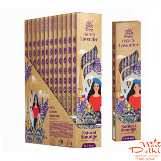 Ароматичні палички French Lavender Himalaya Smudge incese, Французька лаванда - це натуральні індійські пахощі, створені за традиційною масальною технологією. У складі використовуються рослинні компоненти, прянощі та ефірні олії, що забезпечує чистий і виразний аромат лаванди європейського типу.