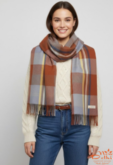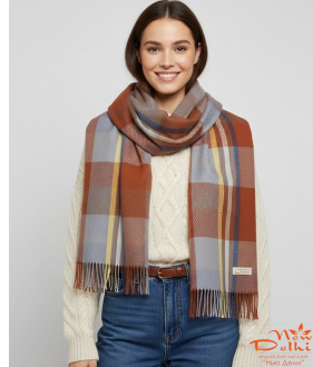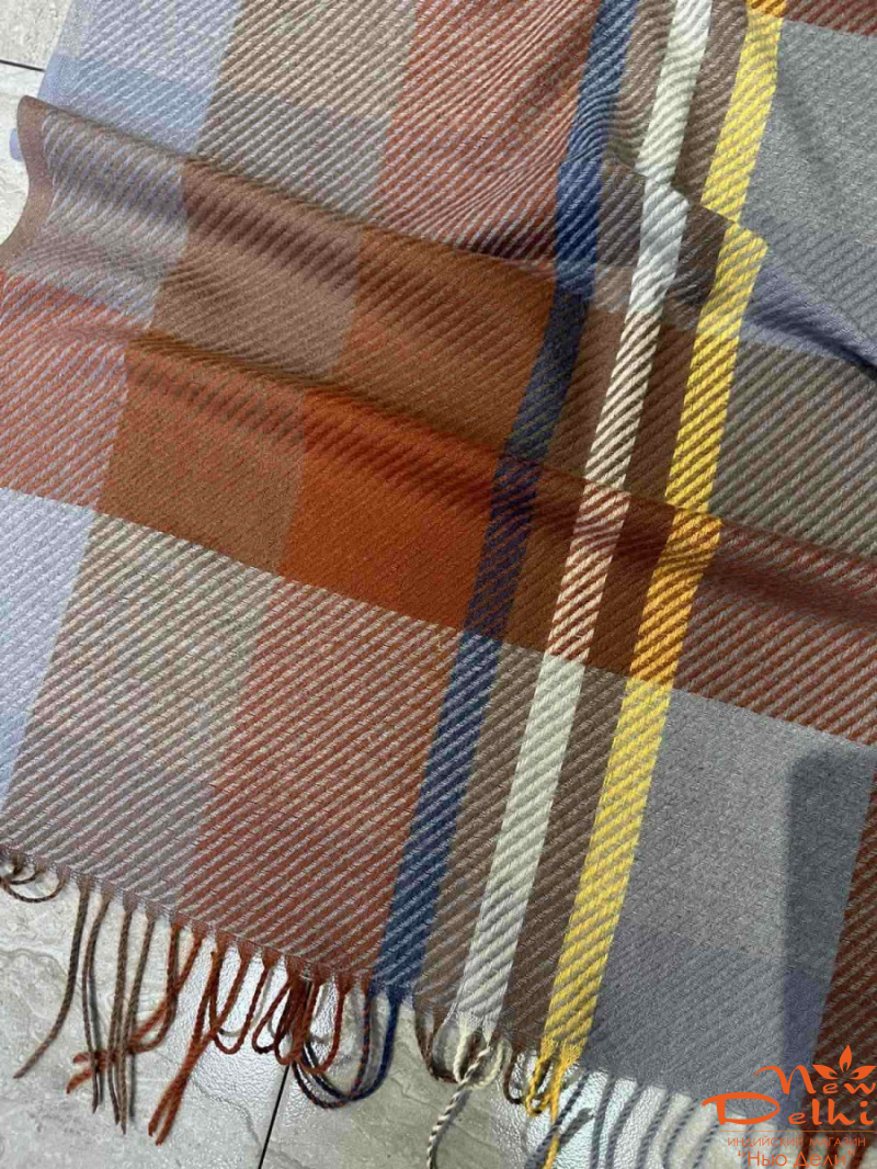 О продукте Кашеміровий палантин "Клітинка", Теракот\блакитний