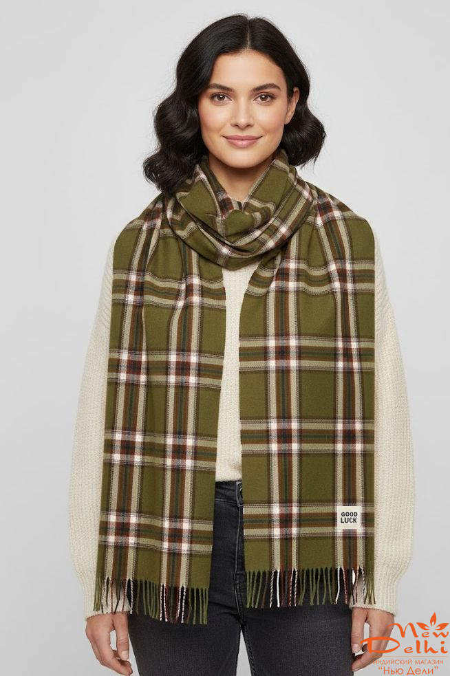 Отзывы Кашеміровий палантин-шарф "Клітинка",Хакі.