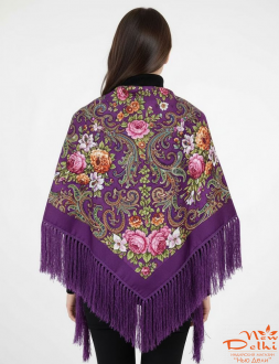Хустка "Квіти", вовна, фіолетова.