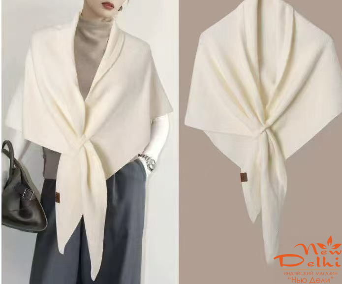 Косинка тепла з вовни, біла, розмір 120*120 см.