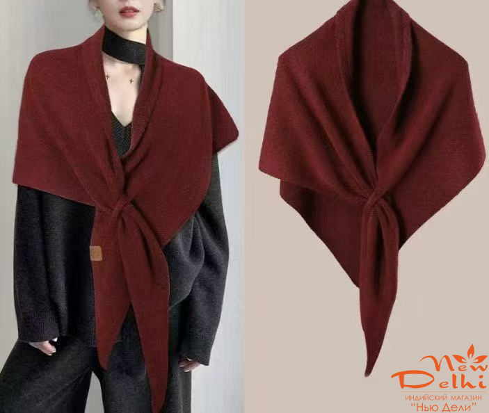 Косинка тепла з вовни, бордо. розмір 120*120 см.