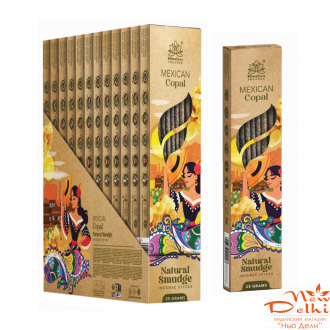 Ароматичні палички Mexican Copal Himalaya Smudge incese, Мексиканський ладан - це натуральні індійські пахощі, створені на основі традиційної масальної технології. Ладан споконвіку використовується в духовних і очищаючих ритуалах завдяки своєму глибокому, чистому і благоговійному аромату. Мексиканський сорт ладану має особливо м'яку, обволікаючу і одночасно медитативну природу.