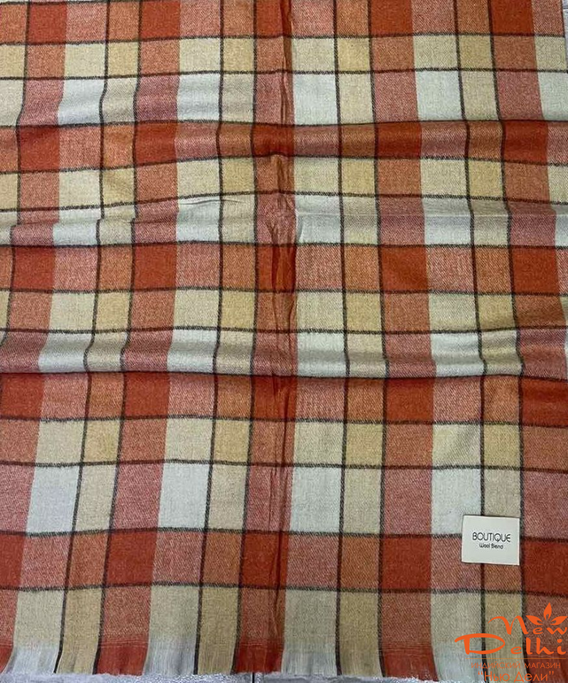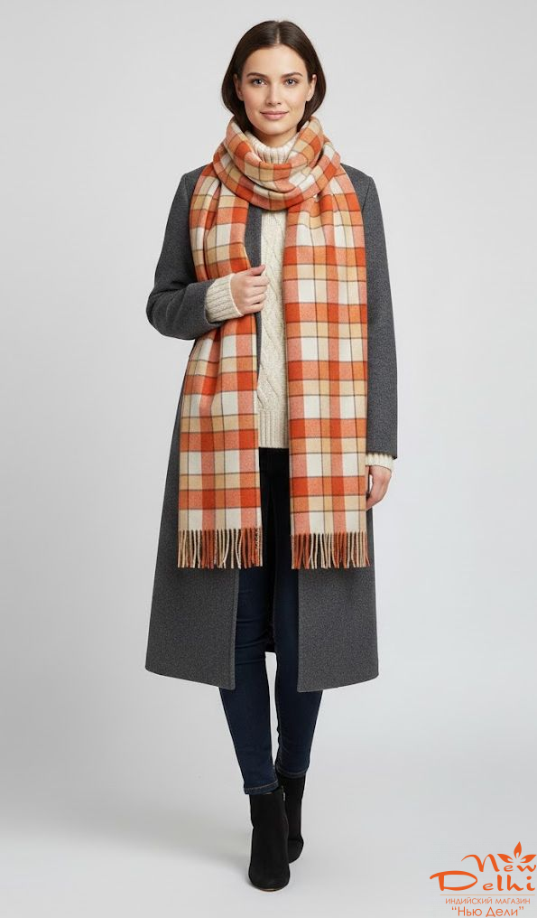 Теплий Картатий Шарф-Плед "Осінній Затишок" у клітинку в теплій оранжевій гаммі