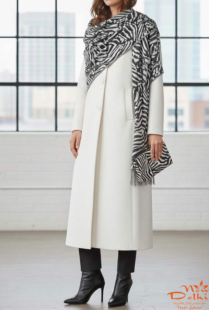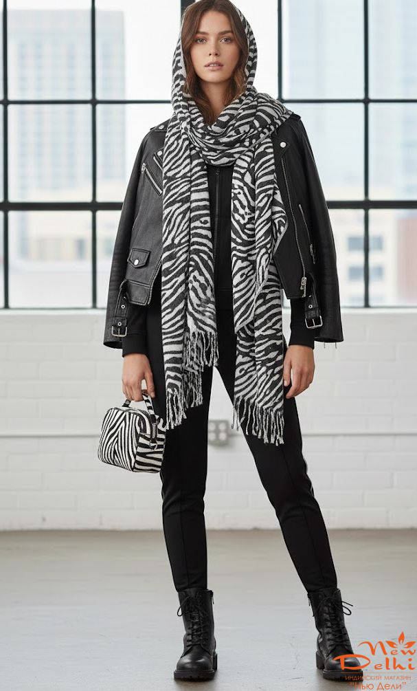 Теплий широкий шарф унісекс з модним принтом зебра.