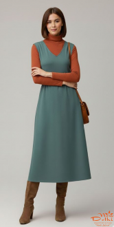 Основа вашого затишного гардероба: Трикотажний сарафан А-силуету в кольорі морська бірюза.
