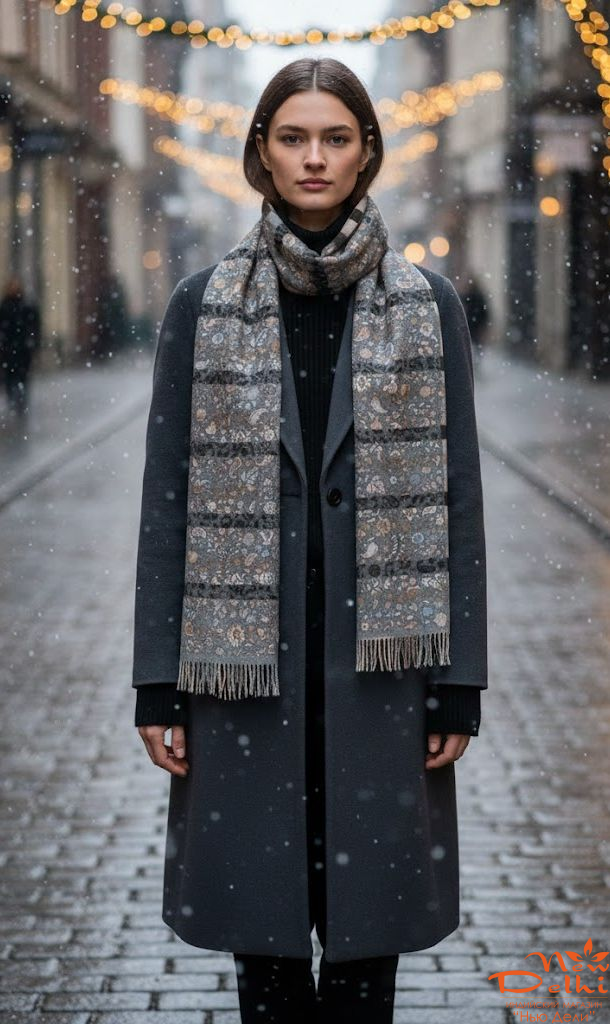 О продукте Шарф-палантин "Пейслі", віскоза, вовна, сірий