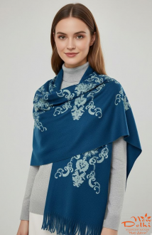 О продукте Шарф Вишивка, Вовна, синій -бирюзовий, Розмір 180 см*70 см