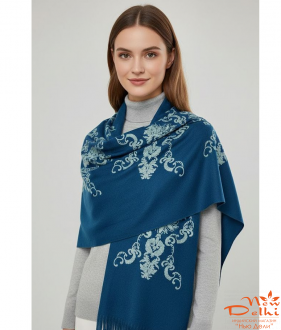 Шарф Вишивка, Вовна, синій -бирюзовий, Розмір 180 см*70 см