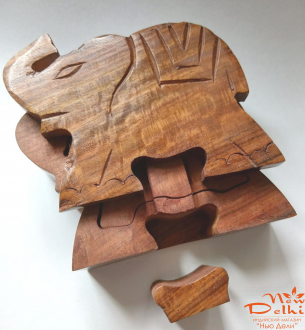 Скринька "Слон" з секретом з червоного дерева "Шишам". Індія. 11*9*4,5 см