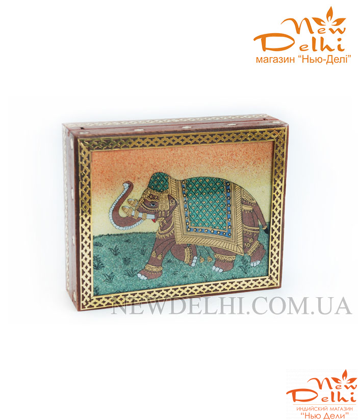 Скринька "Слон" з дерева з малюнком на склі з крихти натурального каміння.13*11*4см. Індія