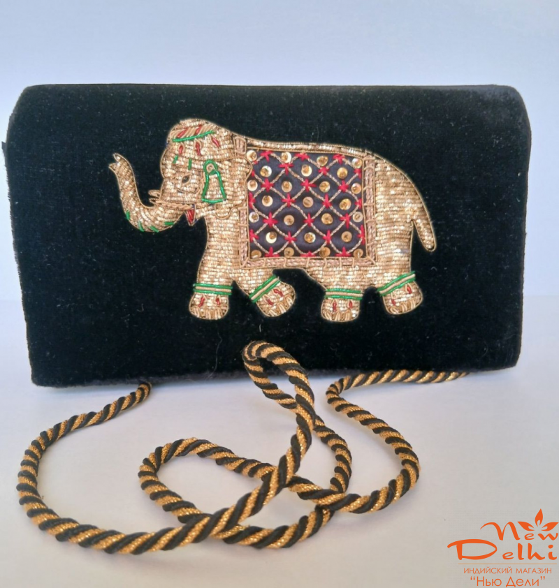 О продукте Сумка -клатч "Слон" з вишивкой. бархат , 25,5*20 см,. Індія