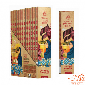 Ароматичні палички Yemen’s Dragon’s Blood Himalaya Smudge incese, Єменська Кров дракона - це індійські масальні пахощі з натуральним складом і унікальним смолистим ароматом. Смола драконового дерева, відома як «Кров дракона», цінується за очищаючі, духовно зміцнюючі і гармонізуючі властивості.
